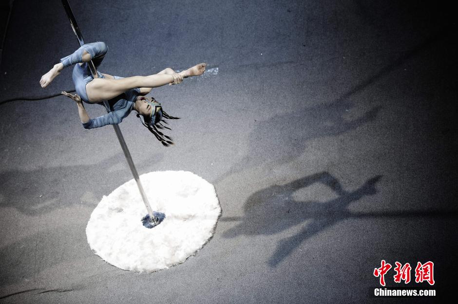 The qualification game of World Pole Dance Championship is held in Tianjin on Feb. 2, 2015. Seven members of the Chinese National Pole Dance Team competed for four berths. The 2015 World Pole Dance Championship will be held in China. (Chinanews/Tong Yu)
