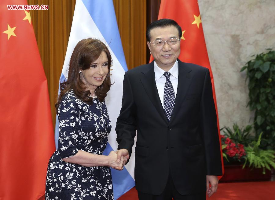 BEIJING, Feb. 5-- Chinese Premier Li Keqiang met with Argentine President Cristina Fernandez de Kirchner in Beijing on Thursday, calling for cooperation in areas including financing and direct trading of bulk commodities.