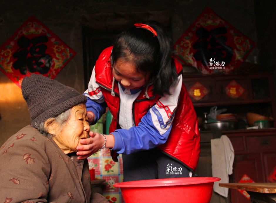 Yang Huicong, 10, was born in Taolin village of Weifang, Shandong province. She has lived for a long time with her 80-year-old grandmother. Since her father works away from home, Yang has to take care of her old grandmother. Yang is a fourth grade schoolgirl. Her mother abandoned her father when she was two years old. Her father gets cataract but still goes out to work. The little girl does cooking and washing every day, and she works hard in school and got high score in exams. (iqilu.com/Zhao Yingquan Zhou Xiaohan)
