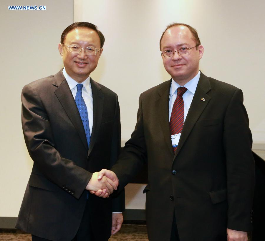 MUNICH, Feb. 7 -- Chinese State Councilor Yang Jiechi has met with Romanian Foreign Minister Bogdan Lucian Aurescu with both sides saying they hoped to further strengthen the bilateral relationship between the two countries.