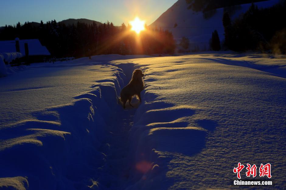 | Hemu, a village in Altay, northwest China's Xinjiang Uyghur Autonomous Region, witnessed a snowfall recently. The snow-covered village, together with mountains and forests, forms an attractive natural "fairyland". (CNS/Zheng Yong) |