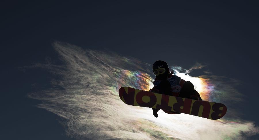| Cai Xuetong of China trains before the final of ladies' halfpipe at the 27th World Winter Universiade in Granada, Spain, Feb. 7, 2015. Cai claimed the title with 82.50 points in the event. (Xinhua/Fei Maohua) |
