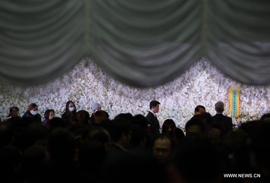 People attend a public memorial ceremony held for victims of the TransAsia Airways plane crash in Taipei, southeast China's Taiwan, Feb. 10, 2015. Flight GE235 of TransAsia Airways, carrying 58 people, crashed into a Taipei river on Feb. 4, killing at least 40 people. (Xinhua/Jin Liwang)