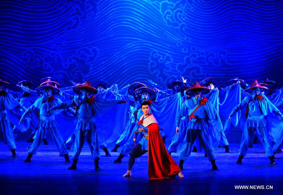 Actors perform during a dance drama entitled "The Dream of the Maritime Silk Road" in Quanzhou, southeast China's Fujian Province, Feb. 11, 2015. (Xinhua/Wei Peiquan)