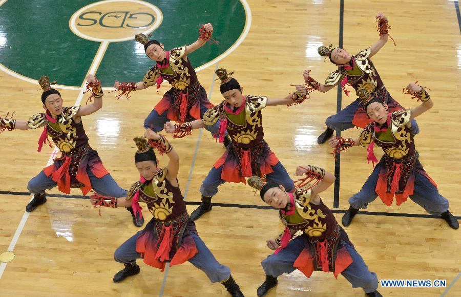 | Students from the High School Affiliated to Renmin University of China perform to celebrate the upcoming Chinese lunar New Year, in Washington Feb. 12, 2015. (Xinhua/Bao Dandan) |