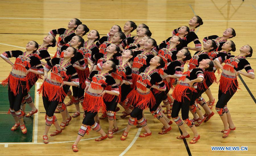 Students from the High School Affiliated to Renmin University of China perform to celebrate the upcoming Chinese lunar New Year, in Washington Feb. 12, 2015. (Xinhua/Bao Dandan)