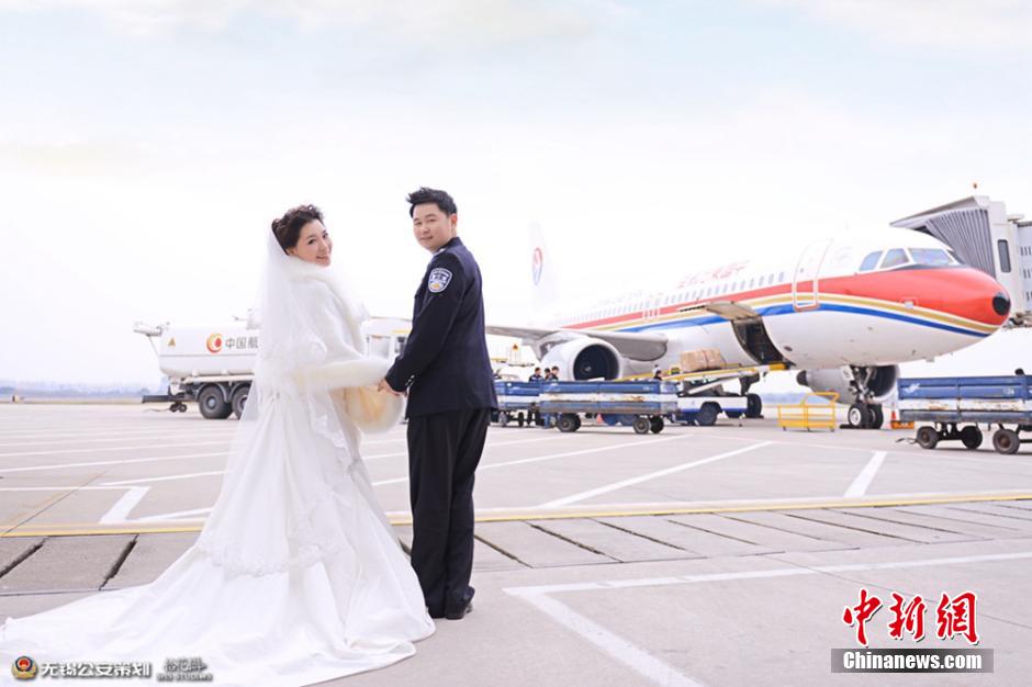 | The Public Security Bureau of Wuxi city posts a series of cool wedding photos of policemen on its official Weibo account on Feb. 10, 2015. 11 policemen from different units took their wedding photos in uniforms. (Photo provided by Wuxi police department) |