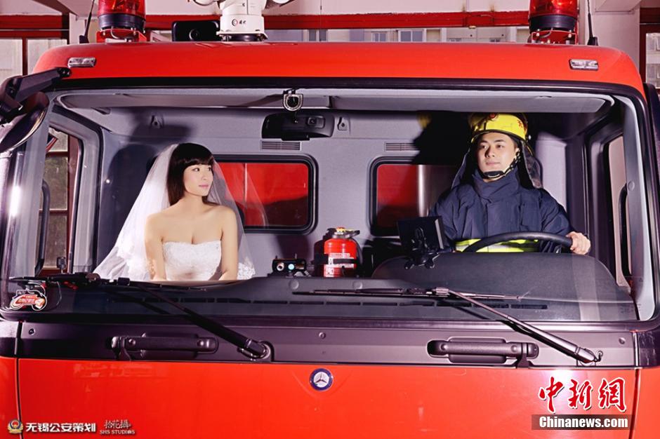 The Public Security Bureau of Wuxi city posts a series of cool wedding photos of policemen on its official Weibo account on Feb. 10, 2015. 11 policemen from different units took their wedding photos in uniforms. (Photo provided by Wuxi police department)