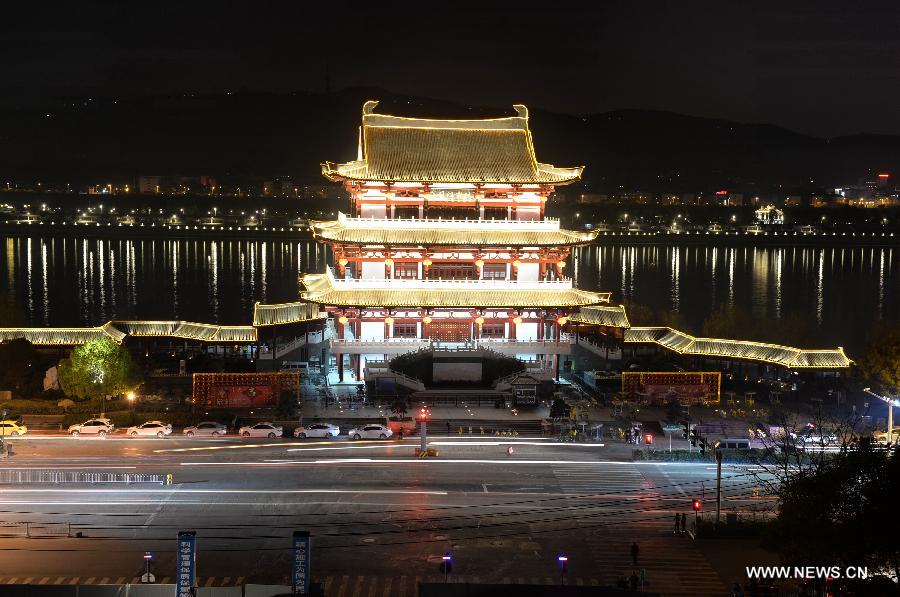 Lights illuminate the banks of the Xiangjiang River in Changsha, capital of cantral China's Hunan Province, Feb. 12, 2015, to welcome the Chinese Spring Festival, or lunar New Year which starts from Feb. 19 this year. (Xinhua/Long Hongtao)