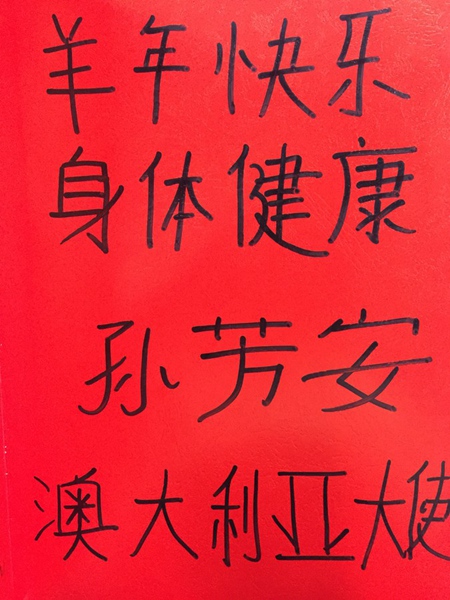 BEIJING, Feb 13 (People's Daily Online) – China's Spring Festival is just around the corner. Australian Ambassador to China H.E. Ms. Frances Adamson extends Spring Festival greetings and wishes as follows.