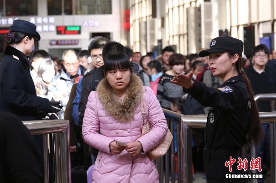 During the Spring Festival travel rush period, a female special police team is busy serving at the Zhengzhou Railway Station in central China’s Henan province. They are responsible for dealing with emergency cases, crime prevention and control and maintaining order in the station area, so the passengers could travel safely and conveniently. (Chinanews/Yang Zhenghua)