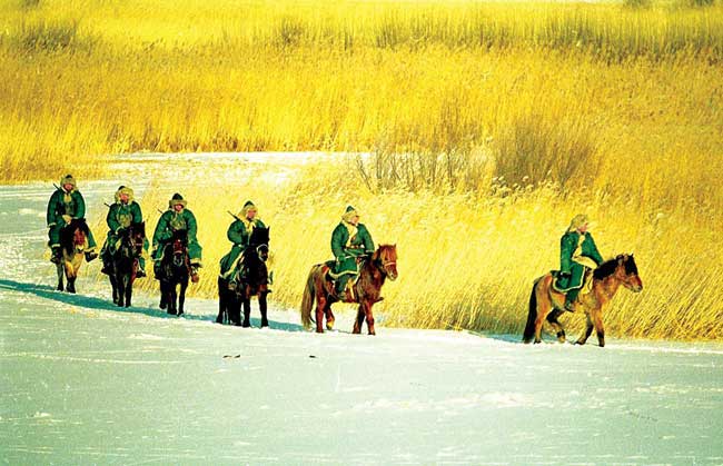 Soldiers patrol along the reed marshes in Manzhouli, north China's Inner Mongolia Autonomous Region.(Chinese Ministry of Defense/Zhou Chaorong)