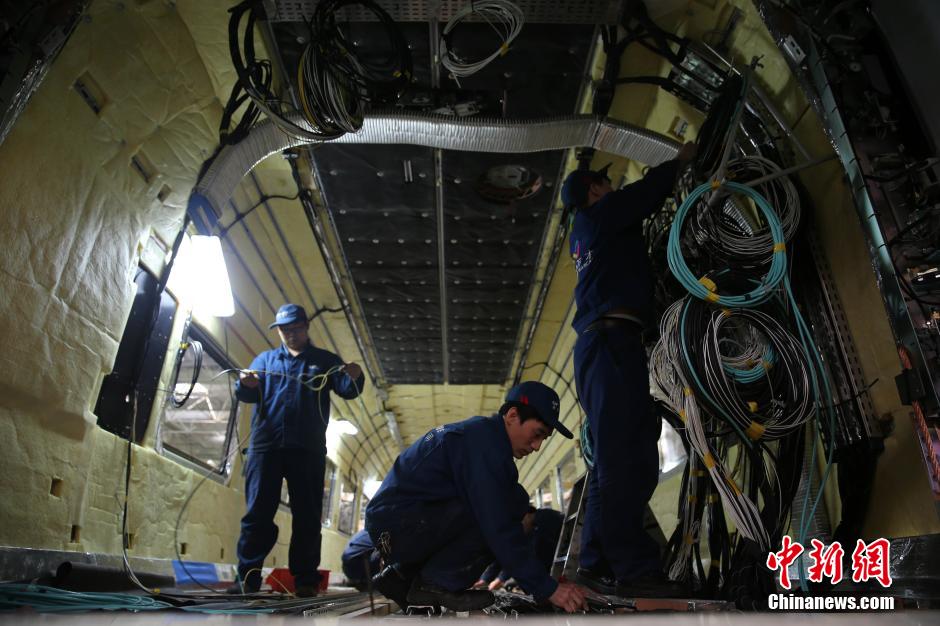 Photo shows the birth of high-speed trains at workshops in CNR Tangshan Railway Vehicle Co., Ltd. During the Spring Festival travel rush, known as "chunyun", the high-speed rail plays an irreplaceable role with its high-speed, stability and high-density. In 2014, the CNR export turnover reached 3 billion US dollars, an increase of 68.6 percent compared with the previous year. (CNS/Yang Kejia)