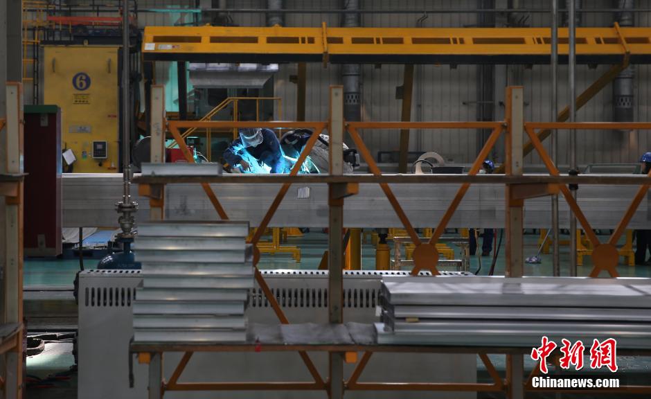 Photo shows the birth of high-speed trains at workshops in CNR Tangshan Railway Vehicle Co., Ltd. During the Spring Festival travel rush, known as "chunyun", the high-speed rail plays an irreplaceable role with its high-speed, stability and high-density. In 2014, the CNR export turnover reached 3 billion US dollars, an increase of 68.6 percent compared with the previous year. (CNS/Yang Kejia)