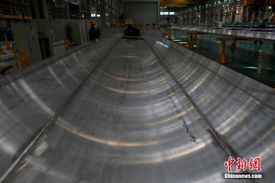 Photo shows the birth of high-speed trains at workshops in CNR Tangshan Railway Vehicle Co., Ltd. During the Spring Festival travel rush, known as "chunyun", the high-speed rail plays an irreplaceable role with its high-speed, stability and high-density. In 2014, the CNR export turnover reached 3 billion US dollars, an increase of 68.6 percent compared with the previous year. (CNS/Yang Kejia)