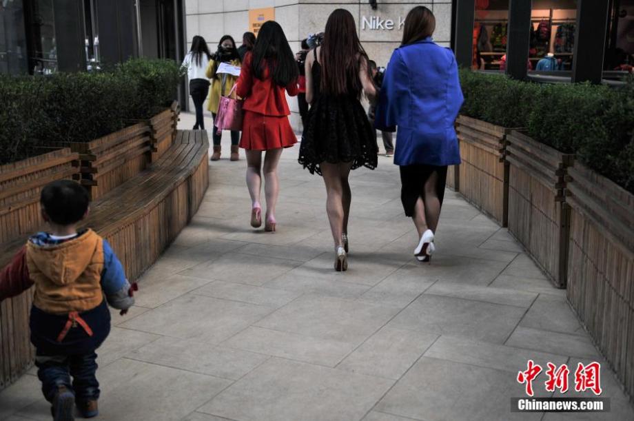 A high-heels running race is held on the Valentine's Day in a shopping mall in Kunming, capital of southwest China's Yunnan province. (CNS/Ren Dong)