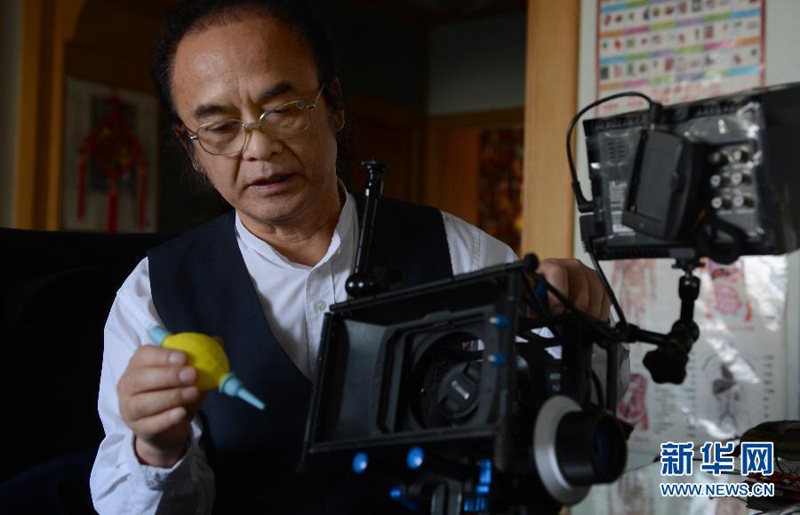 Mo Shubin cleans the cameras and camcorders. (Xinhua/Wang Fei)