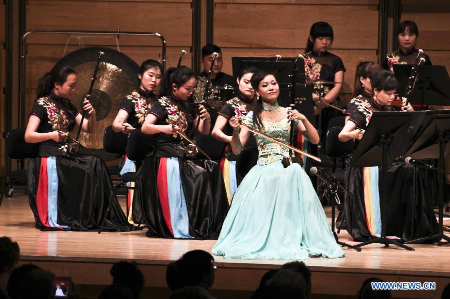 Chinese musicians perform during a traditional Chinese music concert to celebrate Chinese New Year in a Chinese cultural center in Sydney, Australia, Feb. 20, 2015. (Xinhua/Jin Linpeng)