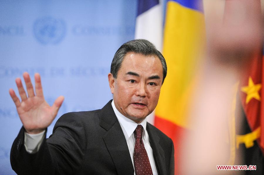 Chinese Foreign Minister Wang Yi holds a press conference after presiding over a United Nations Security Council open debate on international peace and security at the UN headquarters in New York, the United States, on Feb. 23, 2015. (Xinhua/Niu Xiaolei)