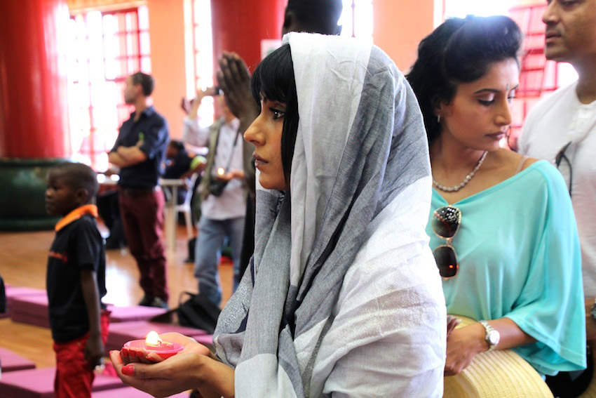 An Indian woman attends the Light Offering Dharma Function. (People's Daily Online/ Zhang Jiexian)