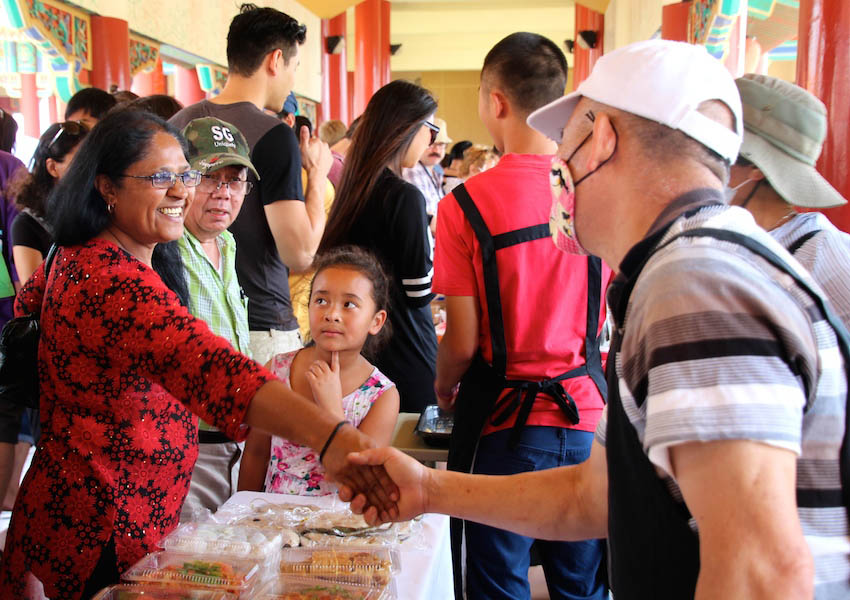 Aside from offering a sentimental Chinese homeland taste, stalls at the Temple Fair also introduce Chinese culture to local South Africans. (People's Daily Online/ Zhang Jiexian)