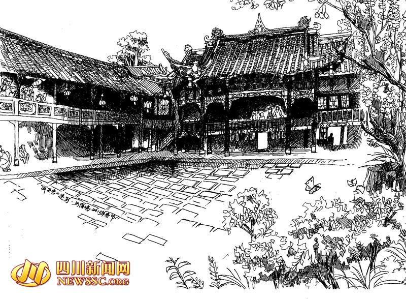 Ma Hairui’s pen sketch of a historical site in Deyang, Southwest China’s Sichuan province during the Spring Festival holiday. (Photo/newssc.org)