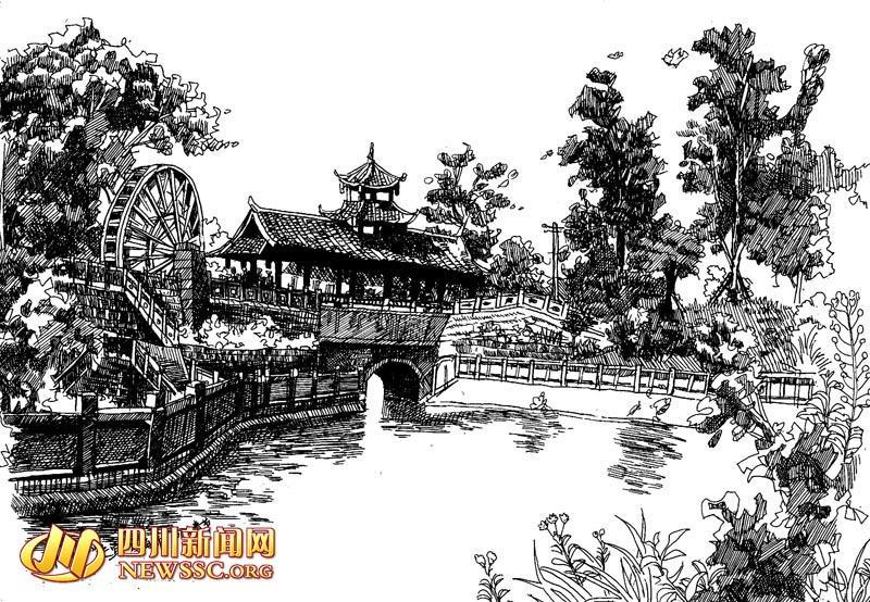 Ma Hairui’s pen sketch of a historical site in Deyang, Southwest China’s Sichuan province during the Spring Festival holiday. (Photo/newssc.org)