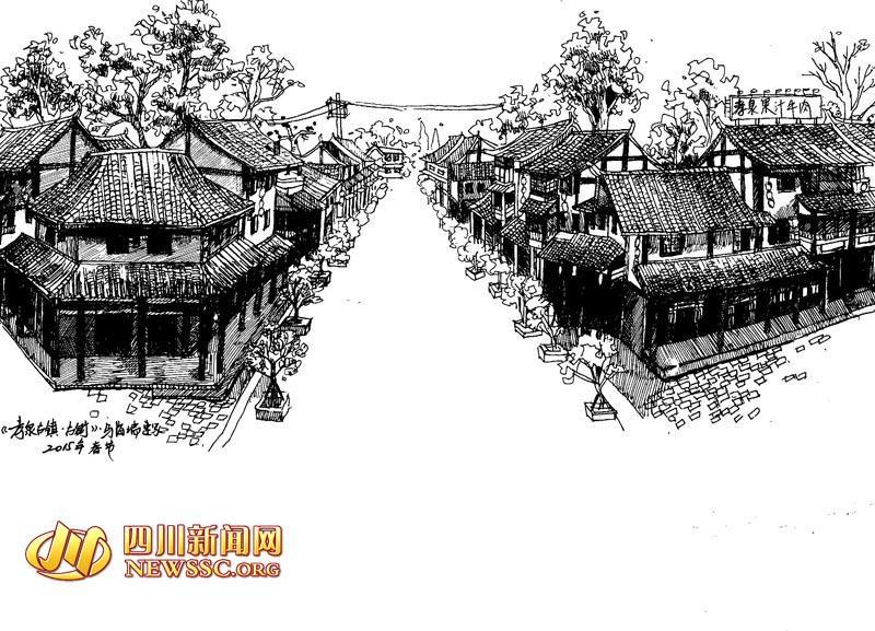 Ma Hairui’s pen sketch of a historical site in Deyang, Southwest China’s Sichuan province during the Spring Festival holiday. (Photo/newssc.org)