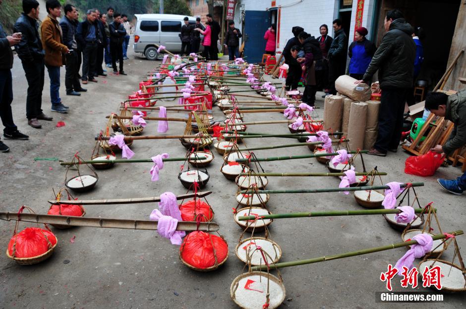 Gifts given by the bridegroom’s family. (Chinanews/Gong Pukang)