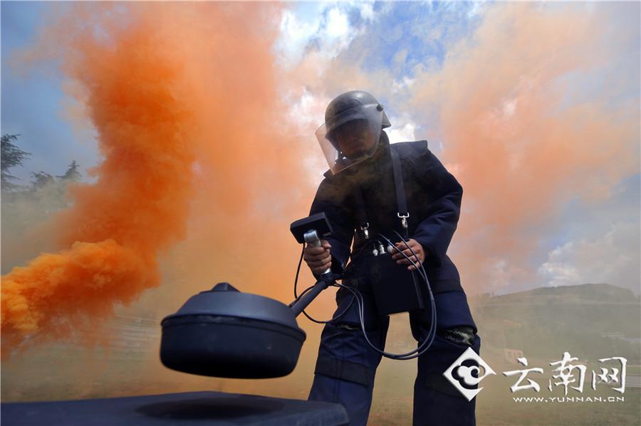 Several soldiers in the People's Armed Police Yunnan General Corps receive rigorous psychological trainings and trainings on how to use the professional equipment before they are capable of safely disposing of explosives. (Photo/Yunnan.cn)