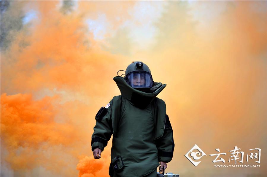 Several soldiers in the People's Armed Police Yunnan General Corps receive rigorous psychological trainings and trainings on how to use the professional equipment before they are capable of safely disposing of explosives. (Photo/Yunnan.cn)