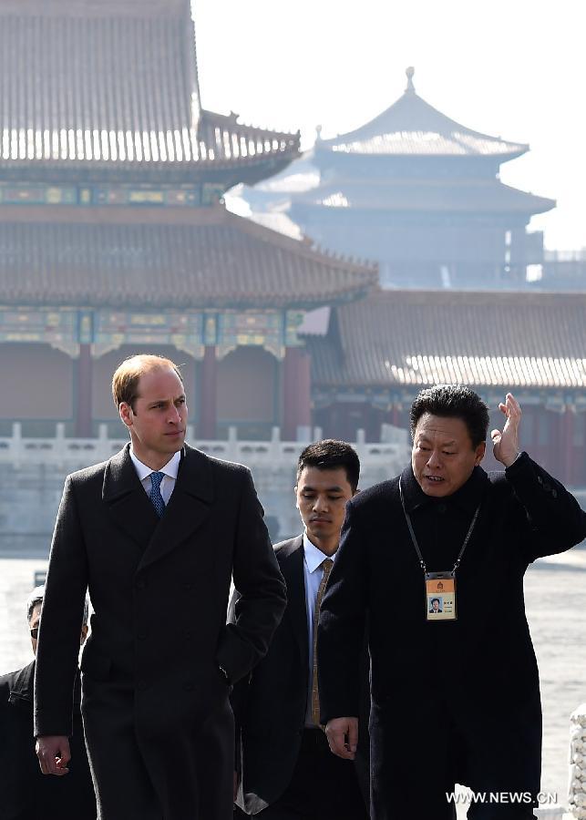 Britain's Prince William (L) visits the Imperial Palace, or the Forbidden City, in Beijing, capital of China, March 2, 2015. (Xinhua/Jin Liangkuai)