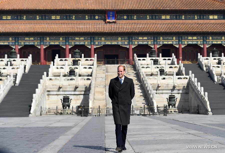 | Britain's Prince William visits the Imperial Palace, or the Forbidden City, in Beijing, capital of China, March 2, 2015. (Xinhua/Jin Liangkuai) |
