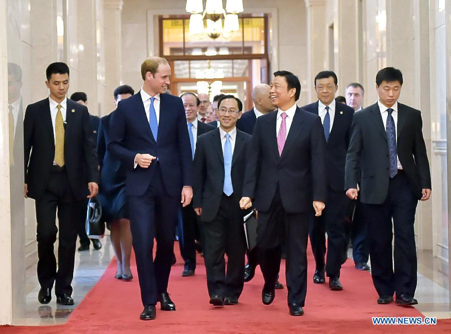 Chinese Vice President Li Yuanchao (R Front) meets with Britain's Prince William (L Front) at the Great Hall of the People in Beijing, capital of China, March 2, 2015. (Xinhua/Li Tao)