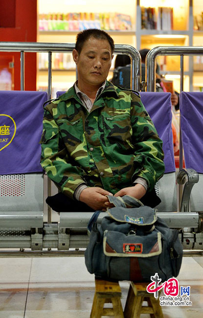 Teng Xingguo stays in the waiting hall. (China.com.cn/Cao Feng)