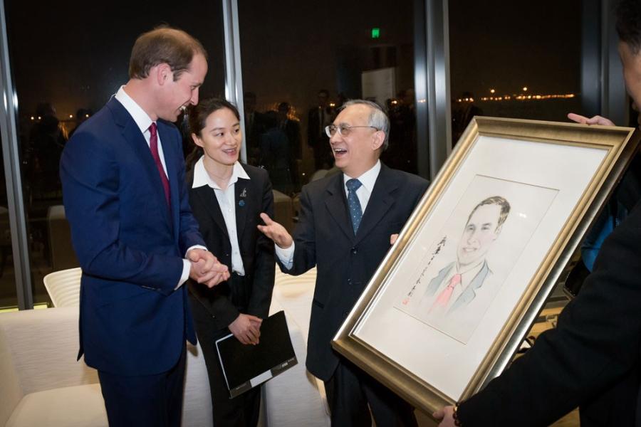 Britain’s Prince William, the Duke of Cambridge, receives a portrait of himself after the opening ceremony of the Great Festival of Creativity at the Long Museum in Shanghai's Xuhui District yesterday. The three-day festival is showcasing UK companies of interest to Chinese investors. (Photo/Shanghai Daily)