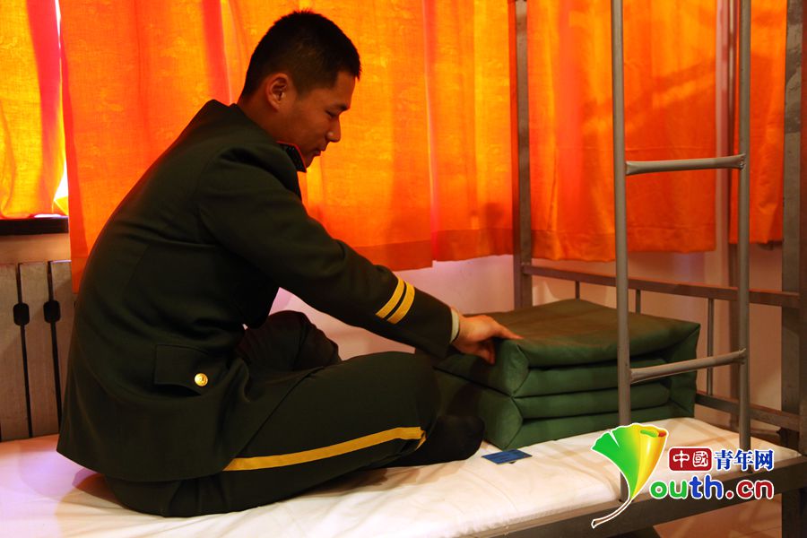 Soldiers with Beijing armed police corps prepare for the upcoming Two Sessions at the Media Center Hotel in Beijing on Feb. 27, 2015. Parts of the hotel's standard rooms have been converted to accommodate the soldiers. (Youth.cn/Kui Gongchen)