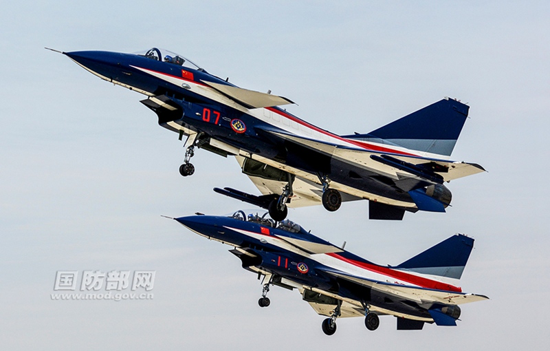 The J-10 fighters of the "Bayi" aerobatics team of the Air Force of the Chinese People's Liberation Army (PLAAF) started flight training in an airport in north China after the 7-day Spring Festival holiday on Feb. 27, 2015. (mod.gov.cn/Zhai Zihe)