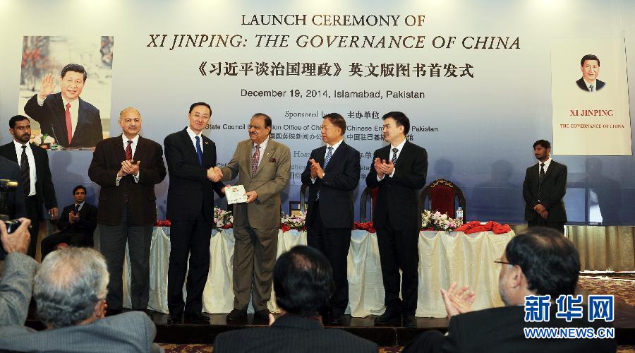 Chinese Ambassador Sun Weidong gives the book "Xi Jinping: The Governance of China" to the President of Pakistan Mamnoon Hussainas as a gift in Istanbul on Dec. 19, 2014. More than 400 people attended this event. (Xinhua/Huang Zongzhi)
