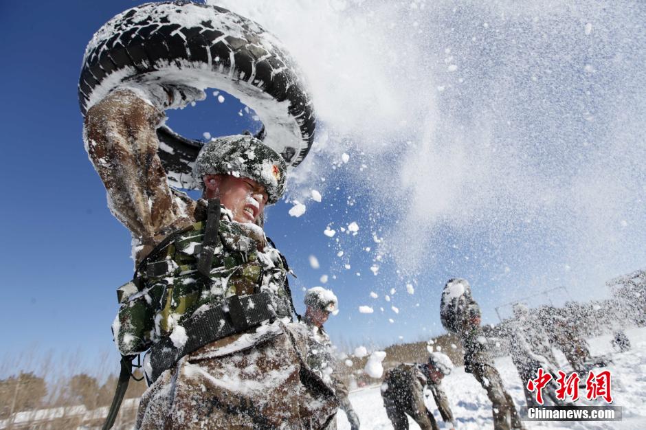 An infantry company which enjoys the title of "Tiger Company" has extreme training under harsh weather condition in Heihe city, Heilongjiang, March 2, 2015. Taking advantage of the local frigid climate, soldiers in Heihe work even harder to be qualified servicemen. (Chinanews/Wei Jianshun)