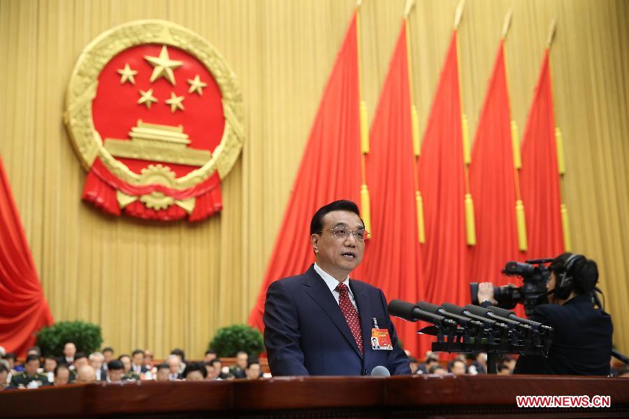 Chinese Premier Li Keqiang delivers the government work report during the opening meeting of the third session of China's 12th National People's Congress (NPC) at the Great Hall of the People in Beijing, capital of China, March 5, 2015. (Xinhua/Pang Xinglei)