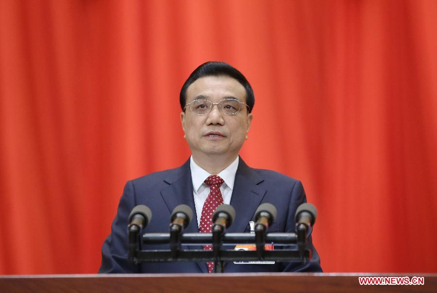 Chinese Premier Li Keqiang delivers the government work report during the opening meeting of the third session of China's 12th National People's Congress (NPC) at the Great Hall of the People in Beijing, capital of China, March 5, 2015. (Xinhua/Pang Xinglei)