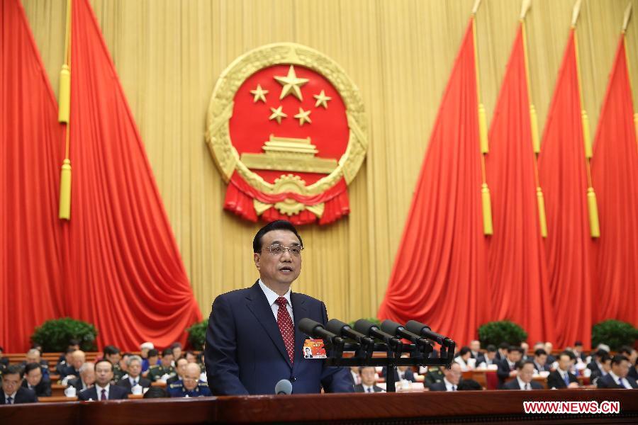 | Chinese Premier Li Keqiang delivers the government work report during the opening meeting of the third session of China's 12th National People's Congress (NPC) at the Great Hall of the People in Beijing, capital of China, March 5, 2015. (Xinhua/Pang Xinglei) |