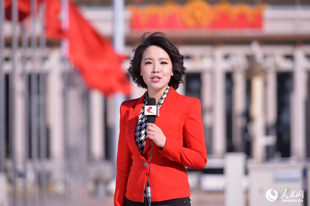 An anchor prepares for the live report outside the Great Hall of the People on March 3, 2015. (Photo/CFP)