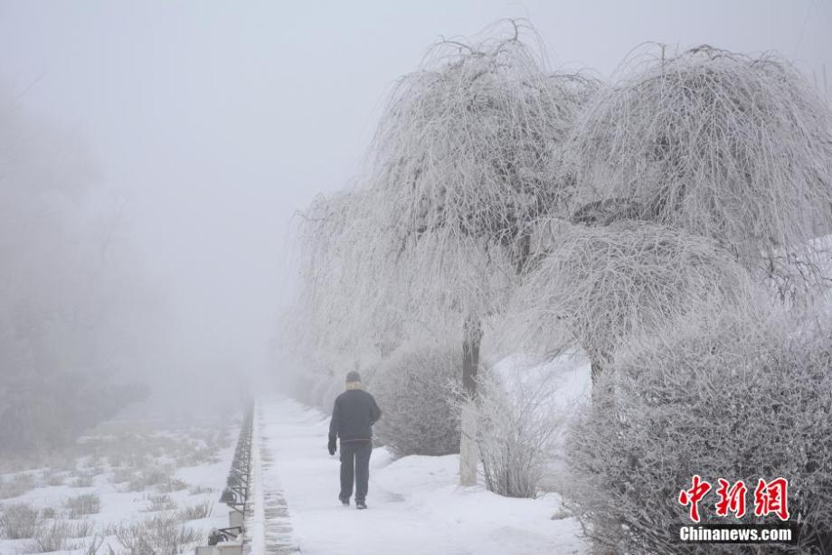 On March 3, 2015, beautiful rime turns the Songhua River into a fairyland in Jilin city, northeast China's Jilin province. (CNS/Wang Mingming)