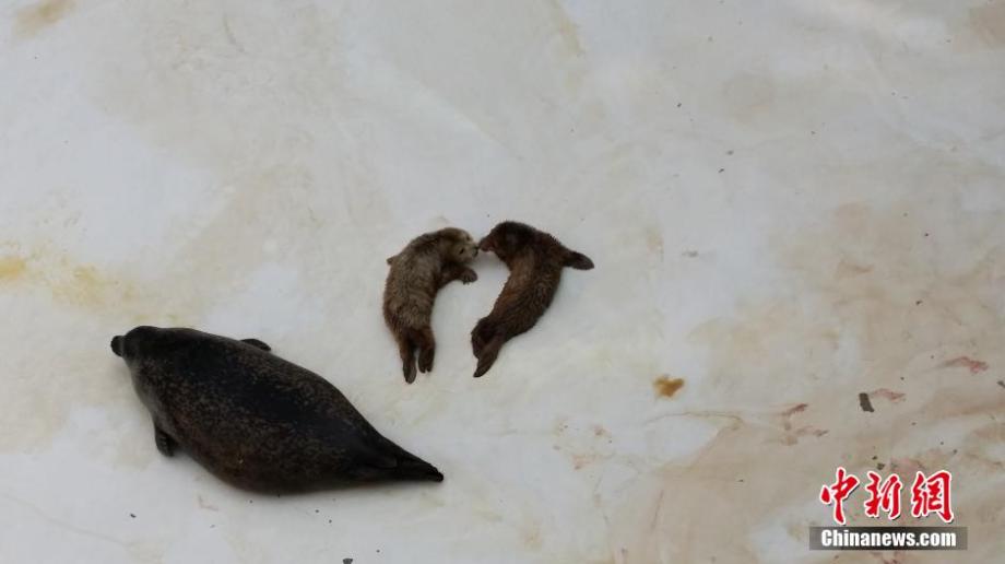 A female harbor seal gave birth to twins in an aquarium in Dalian on March 4, 2014. According to documents, this is the world's first case of harbor seal twins born in an artificial breeding environment. (CNS/Yang Yi)