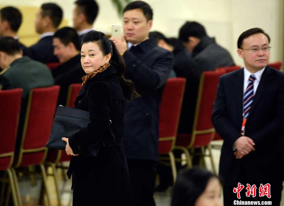 Song Zuying, singer and a member of the 12th National Committee of the CPPCC, attends the opening meeting of the third session of the 12th National People's Congress. (Photo/Chinanews.com)