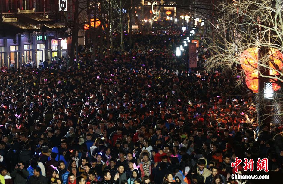 According to information released by the local police, a total of 520,000 people visited the Qinhuai Lantern Fair on the night of Lantern Festival in Nanjing, capital of east China's Jiangsu province on March 5, 2015. Qinhuai Lantern Fair is a popular folk cultural activity in Nanjing, mainly held during the period from the Spring Festival to the Lantern Festival (CNS/Yang Bo)