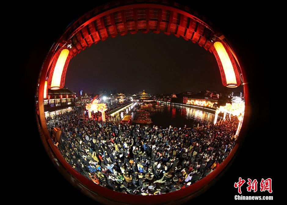 According to information released by the local police, a total of 520,000 people visited the Qinhuai Lantern Fair on the night of Lantern Festival in Nanjing, capital of east China's Jiangsu province on March 5, 2015. Qinhuai Lantern Fair is a popular folk cultural activity in Nanjing, mainly held during the period from the Spring Festival to the Lantern Festival (CNS/Yang Bo)