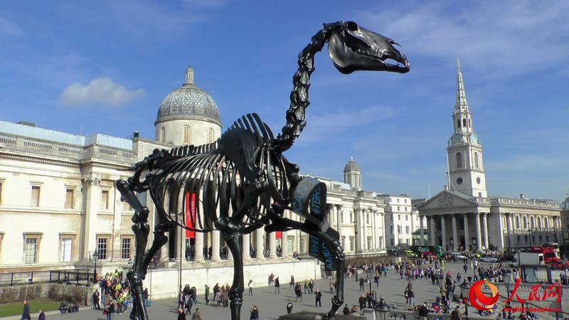 LONDON Mar. 5 (People's Daily Online)——Gift Horse by artist Hans Haacke was unveiled by the Mayor of London Boris Johnson this morning in London’s Trafalgar Square. The new commission is shown on the Fourth Plinth of the square for the next 18 months. Gift Horse is the tenth sculpture to be unveiled on Trafalgar Square’s celebrated plinth.